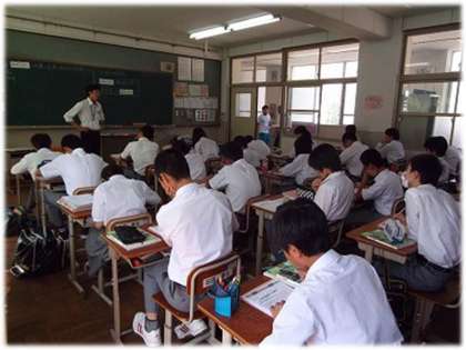 今日は,教育実習生(社会科)の研究授業を2年3組で行いました。本時の目標は,「沖縄の産業の特徴を理解しよう」でした。班での話し合いや発表の場面でも積極的に取り組めていました。