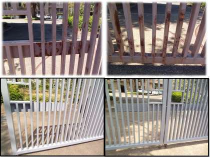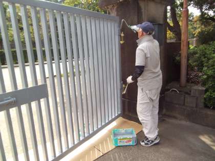 管理用務員さんを中心に,正門のペンキ塗りを行いました。先週のうちに,さびを落とし,昨日さび止めを塗り,今日は本塗りを行いました。長年かかってペンキが剥げ落ちてきましたが,見違えるようにきれいになりました。