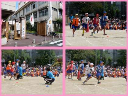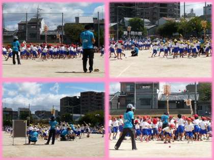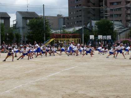 二条城北小学校の運動会に行ってきました。白熱した「中学年リレー」,そして,低学年の部の「玉入れ」では,赤組・白組・青組・黄組に分かれて,みんな笑顔でがんばっていました。また,2年生の団体演技「キッズ・ソーラン」では,ソーラン節の曲に合わせて「ドッコイショ!ドッコイショ!,ソーラン♪ソーラン♪」と言いながら,みんな気合を入れて学年がひとつになって演技をしていました。