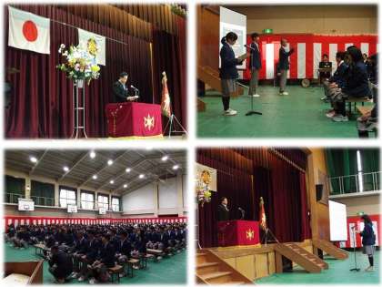 厳粛な雰囲気の中,在校生の歓迎の言葉,新入生の誓いの言葉ともに,堂々とした態度でこれからの意気込みを感じさせる立派なものでした。これからの3年間,この二条中学校で,自分の夢の実現に向かって大いに努力をしてくれることを期待しています。