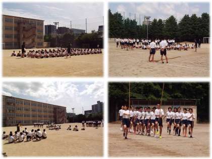 入場行進,準備体操から始まり,出場種目の招集練習,そして学年種目(バラエティーリレー,2人3脚,綱引き)やリレーの確認を行いました。