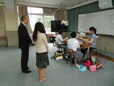 立命館大学のから2名の教授が,本校の難聴学級見学のため来校されました。難聴学級授業を参観のあと,本校の特別支援教育について説明をさせていただきました。