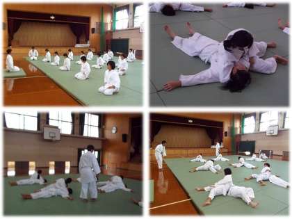 練習の最初と終わりにはきちんと「礼」をします。「精力善用」「自他共栄」の精神を大切に,みんな一生懸命取り組んでいます。今日は,「寝技」の基本的な動きを練習しました。