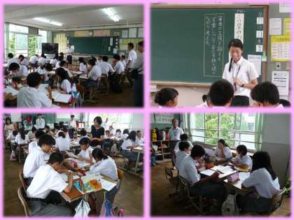 2限,2年生国語科の授業で,教育実習生による研究授業が行われ,大学の先生や数名の本校教職員が参観しました。