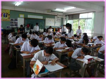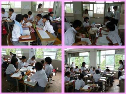 本時の目標は「筆者の主張を踏まえ,自身の経験をもとに言葉について考える」でした。少し難しい目標でしたが,生徒達は,それぞれの具体的な経験をもとに文章にまとめ,しっかりと発表できていました。実習生も,きちんと適切な指示を出しており,和やかな雰囲気の中で授業が行われたことは大変よかったです。