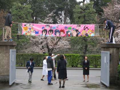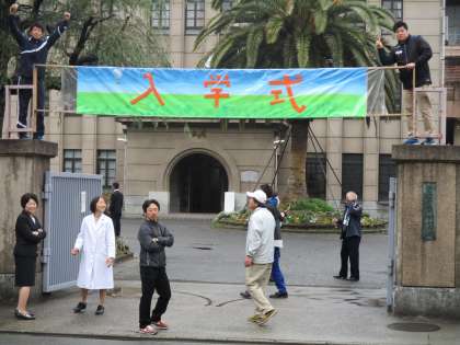 朝から教職員が校門に歓迎のアーチをかける作業をしてくれました。準備は整いました。後は、新入生の登校を待つばかりです。