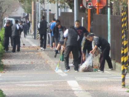 南に目を移すと、隣の朱雀高校の生徒が校門付近の清掃活動に精を出しています。