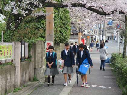 上京区の南の端に位置する本校には、ほとんどの生徒が北の方からやってきます。