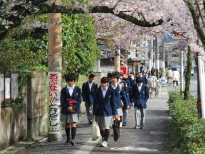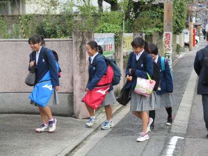 やや肌寒い中ですが、生徒たちは元気に登校してきました。