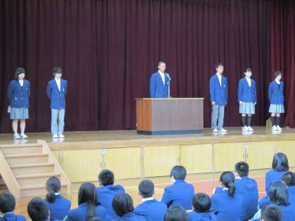 その後は、生徒会本部役員から全校生徒に向けたメッセージです。これがなかなか迫力がありました。