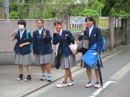 どんよりとした空の雲も、二条中の子どもたちの明るい笑顔が吹き飛ばしてくれそうです。