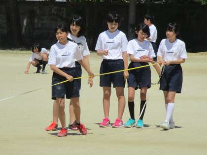 3時間目の1年の体育の様子です。今日はスポーツテスト。グループごとに様々なテストに挑戦しています。