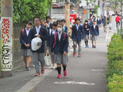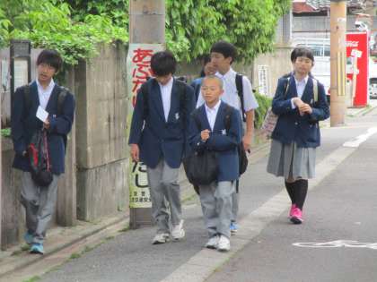 観光客の方も、さすがに二条城の西側にまでは来られないようですが、こちら側もきれいです。そんな道を通って登校してくる子どもたちは幸せです。