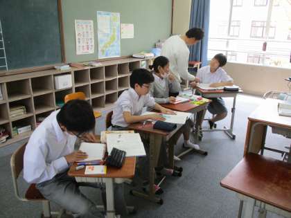 6組は技術、3−5は本来2クラスに分かれています。今日は数学と国語です。