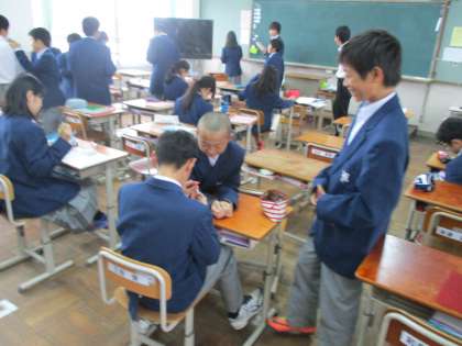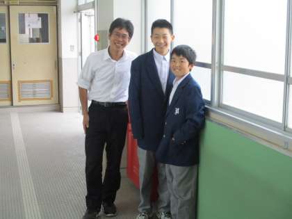 廊下で先生と一緒に写真に納まりました。