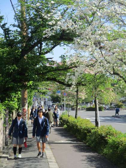今朝はあちこちからウグイスの美しい鳴き声が聞こえてきます。おそらく何羽かいるのでしょう。ハナミズキ、新緑、爽やかな気候、晴天、そしてウグイス、春まっさかりであります。