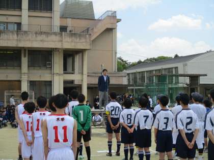 男子陸上部の決意表明の後、吹奏楽部のキャプテンから選手団に激励の言葉です。
