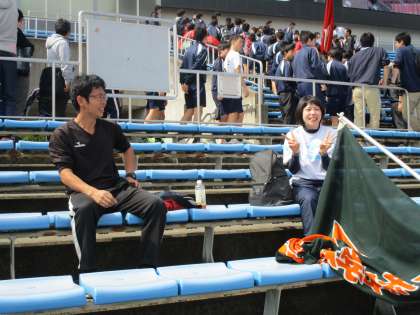 選手はまだ到着していませんでしたが、すでにブラスバンド部の子たちが練習に励んでいました。あれだけの人数がいると、しかもパートごとに集まっている(本校の生徒が集まっている訳ではない)本校の生徒を探し出すのが難しいです。