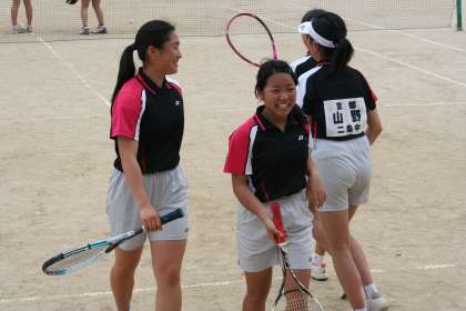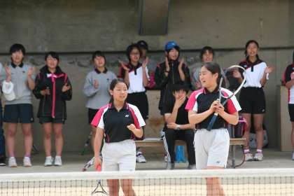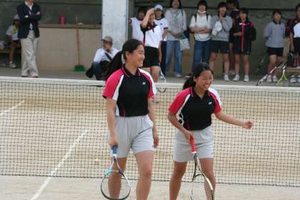 団体戦2試合目に出場したペアは、終始明るいムードで試合を展開しまいた。