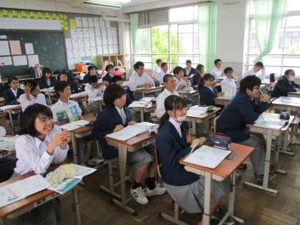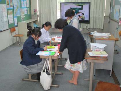 5組は英語、1組は理科です。どちらも楽しく学んでいました。