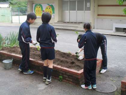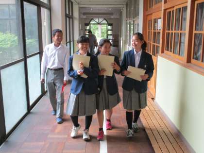 2−5の皆さんは、校内を歩いてユニバーサルデザインを探しています。