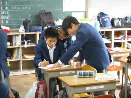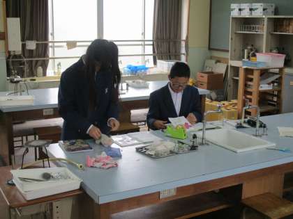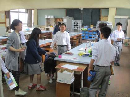 1年生は理科室での授業が終わったところです。