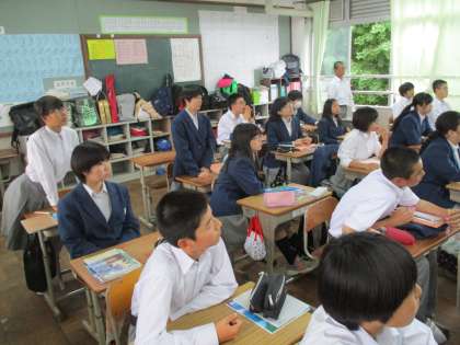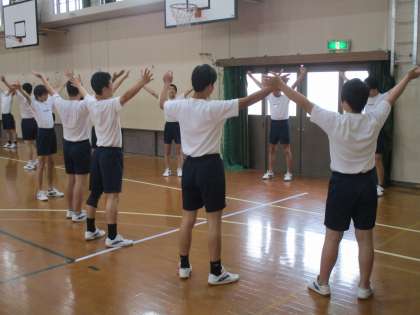 1・2組は講堂でダンスです。おそらく体育大会で準備運動に使うのでしょう。