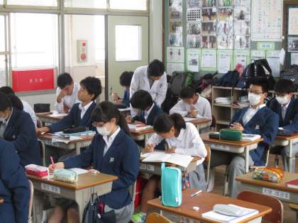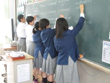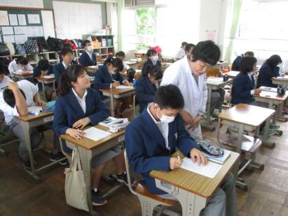 3年は数学の時間の様子から紹介します。今日も迫力ある授業でした。