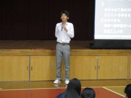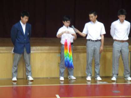 セレモニーの予行を終え、突然の指名を受けて感想を述べています。とても上手に言えました。