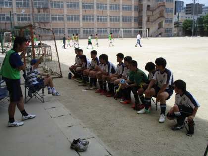 野球部が外に出ているので、サッカー部が2つの学校を招いて練習試合をしています。