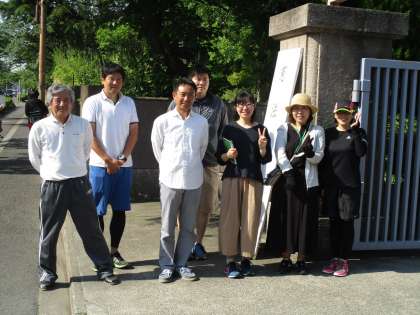 今日は、PTA本部役員の皆様方が朝のあいさつに一緒に立って下さいました。