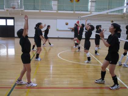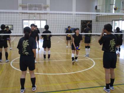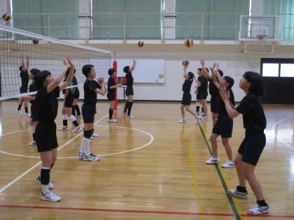 女子バレー部は基本の練習にみっちりと取り組んでいます。