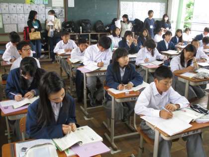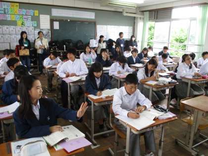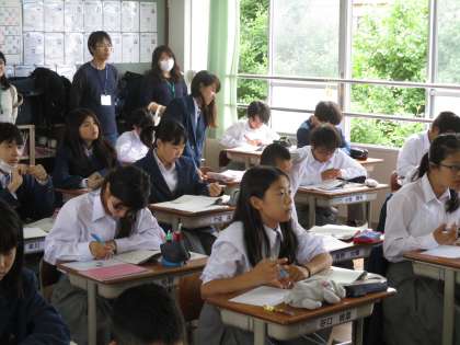 このクラスは国語です。頑張って意見を発表し合っていました。