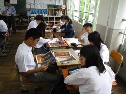 2組は美術です。今日は鑑賞の時間です。