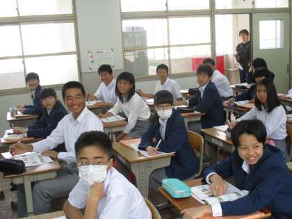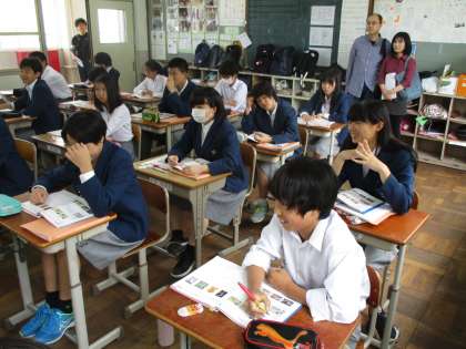 1組は英語です。今日も楽しく学んでいます。