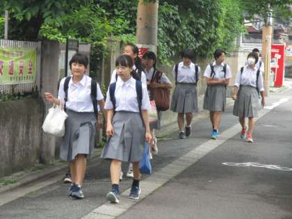 校門付近だけでなく、生徒の登校路のあちらこちらに代表生徒と教職員が立って挨拶をします。