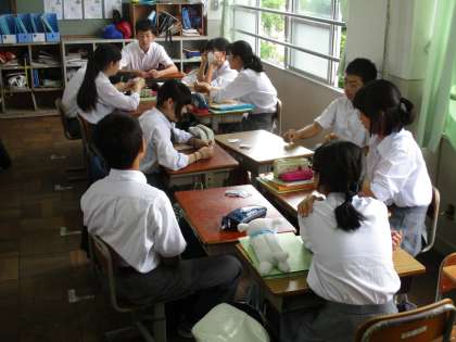 5組の人は、話し合い活動の際、周りから一度にいろいろな声が入ってくるので混乱することが多いようです。同じグループの人がうまく支援してください。