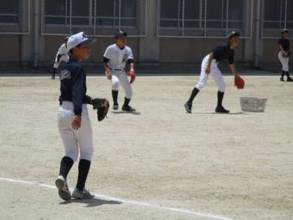 グランドでは、九条中学校を迎えて練習試合です。