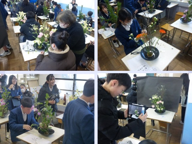 ほとんどの生徒は初めての体験、華道を十分楽しめたのではないでしょうか。