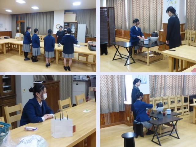 茶道体験教室で学んだ発表の場であり、地域やPTAの方と生徒との交流の場でもあります。