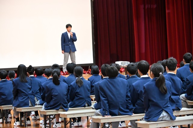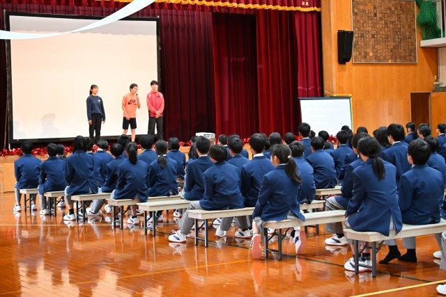 4月14日(火)5、6限に新入生歓迎会を実施しました。新入生に二条中のことを知ってもらい、少しでも早く二条中に馴染んでもらおうと、生徒会本部が中心となって企画した行事です。吹奏楽部の軽快な演奏とともに新入生が入場し、3学年が初めて一堂に会します。創造性溢れる楽しいオープニングに続き、委員会活動の紹介、各部趣向を凝らした部活動紹介などが行われました。新入生の皆さんは、やってみたい委員会や部活動は決まりましたか?部活動は見学や体験もできますので、じっくり選びましょう。