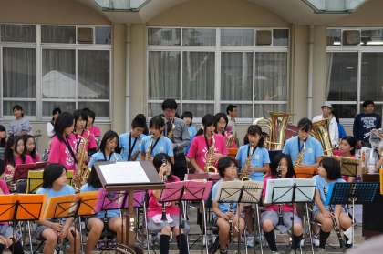 地域の方々に見守られ、仁和小学校のウインドアンサンブル部と合同で3曲演奏し、有意義な交流ができました。