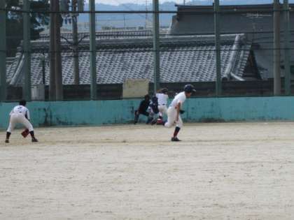 予選リーグ無敗で勝ち進んできた野球部ですが、リーグ1位の順位を決める試合です。二条中学校が対戦相手でした。1回から着実に得点を点を重ね、再三のピンチも冷静に切り抜け、見事勝利を収めました。2次リーグもこの調子で頑張ってください。たくさんの応援ありがとうございました。