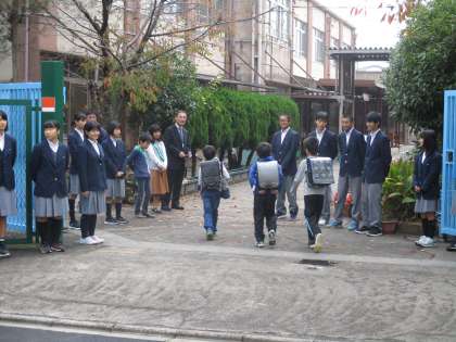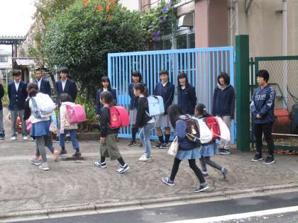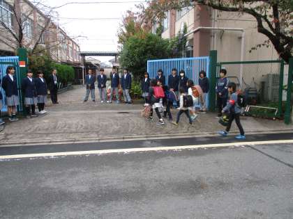 合同あいさつ運動に大将軍小学校に行ってきました。何回か回を重ねてるので小学生も慣れて来たようですが、中学生の方は新本部役員になって初めてのあいさつ運動になりました。それでもみんな大きな声であいさつできていましたよ。朝から大きな声であいさつすると気分がいいですね。