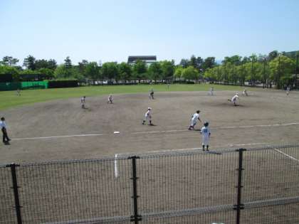 5月5日、岡崎公園グランドで春季大会野球の3回戦が行われました。対戦校は新人戦で惜敗した洛北中学校でしたが、見事コールドゲームで勝利しました。いよいよベスト4をかけての準々決勝です。