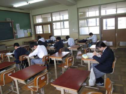 5月19日、テスト前土曜学習が行われています。1年生は初めての定期テストです。40名近くの参加者はみんな頑張っています。
