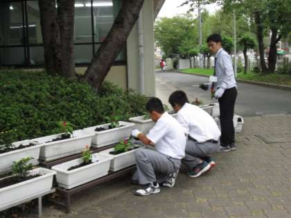 9月13日放課後、環境委員会が花の植え替えをしてくれました。猛暑を通り越した酷暑で正門の花が大きな打撃を受けていました。短時間での植え替えご苦労様です。