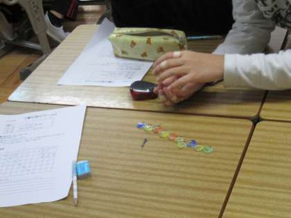 11月13日、仁和小学校で数学の出前事業を行いました。3限は1組、4限は2組で『石取りの必勝法』を学習しました。石取の必勝法は『じゃんけんに勝つ』でした。