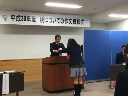 京都地方合同庁舎において「税についての作文表彰式」が行われました。本校から3作品作品が賞を受け,表彰されました。立派な内容の作品でした。おめでとうございます。