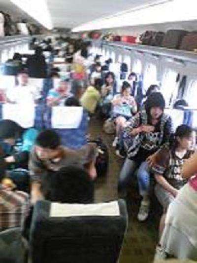集合時間に全員がきちんと集まることができ、結団式を終えて予定通りの新幹線に乗車できました。1分間の停車時間に全員が乗り込めるか心配でしたが、体育館での練習の成果でしょうか、速やかに乗車することができました。生徒たちは車内では早速、トランプで遊んだり、お菓子を食べたり楽しそうに過ごしています。